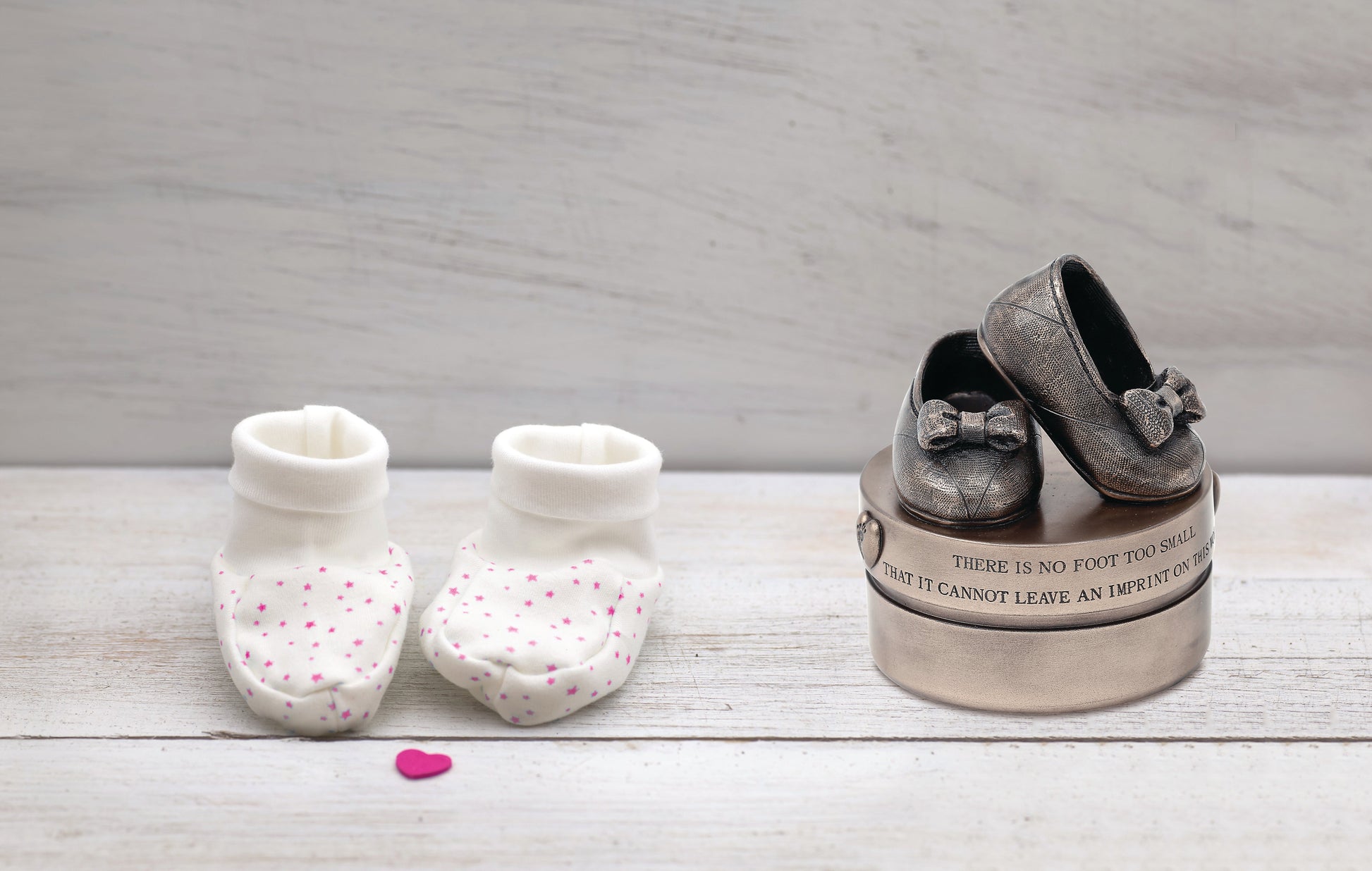 A timeless piece that honors new beginnings, the Baby Girl Booties Trinket Box is a heartfelt gift that will be cherished for generations.