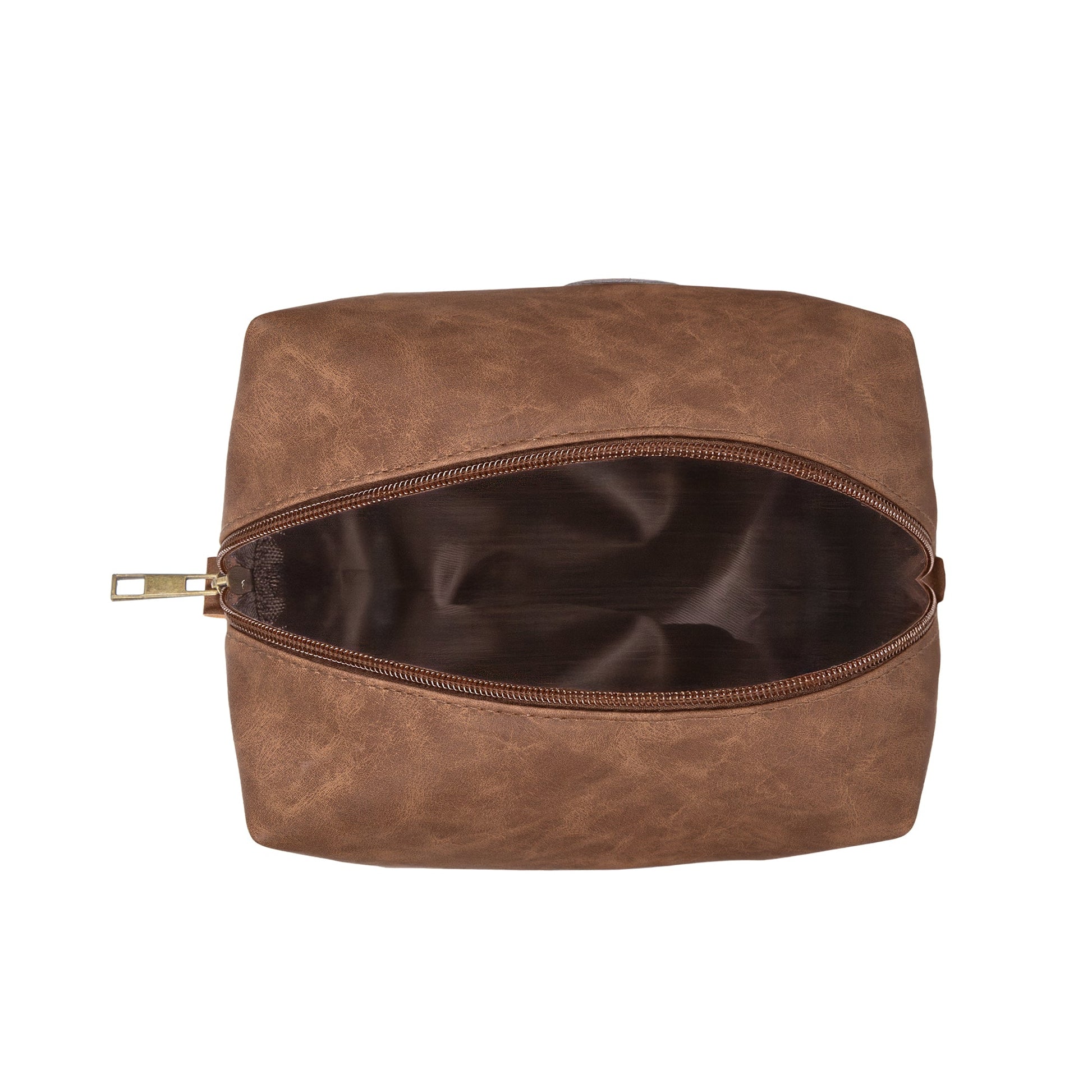 Perfect for keeping toiletries, grooming tools, or travel accessories organized, it features a strong zip closure, sturdy leather handle, and a roomy, wipeable interior. Whether at home or on the road, it combines rugged functionality with classic style.