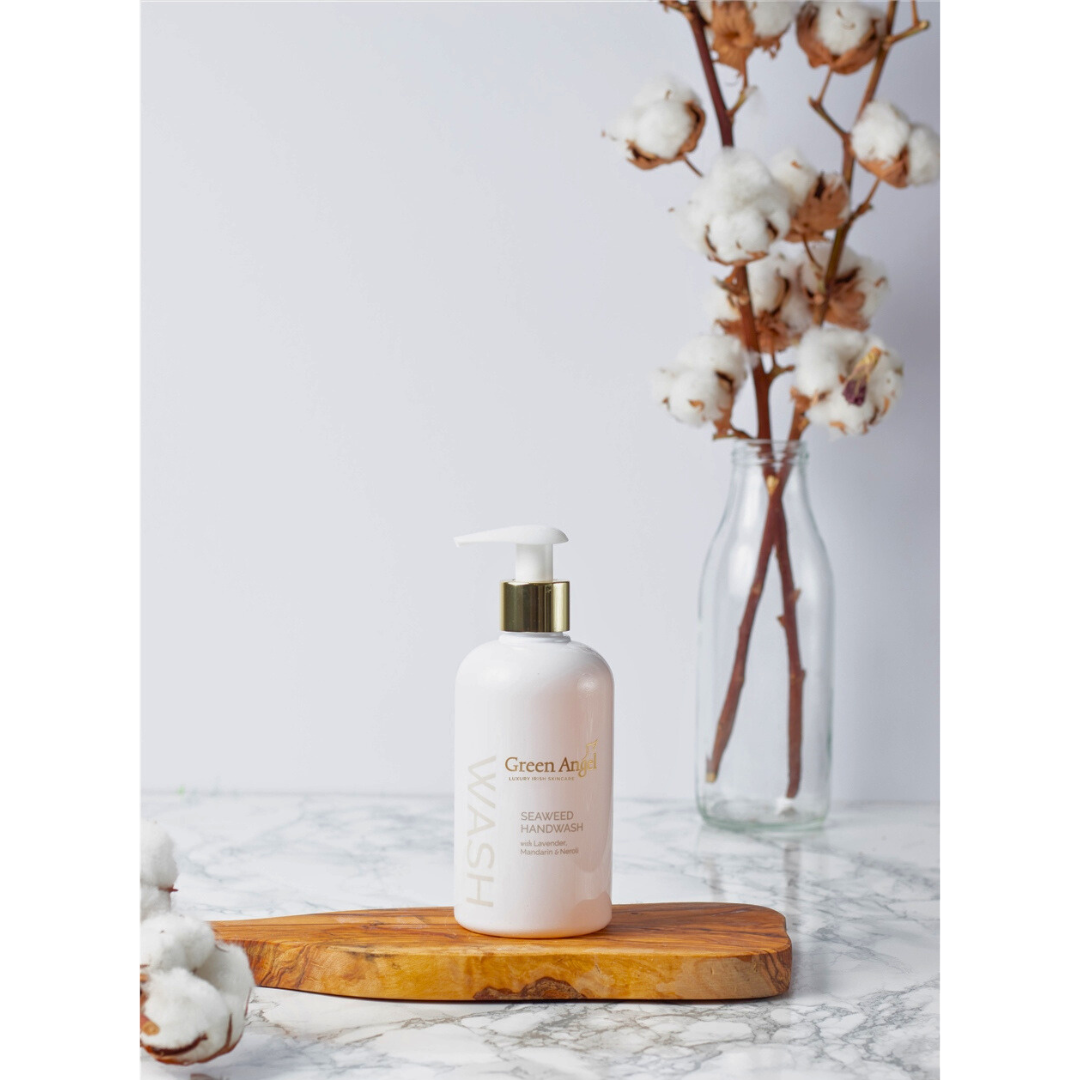 The Seaweed Hand Wash Gel by Green Angel blends four species of hand-harvested Organic Irish seaweed with the therapeutic benefits of Lavender, Mandarin, and Neroli essential oils. This nourishing formula hydrates with every wash, leaving hands feeling soft and refreshed.