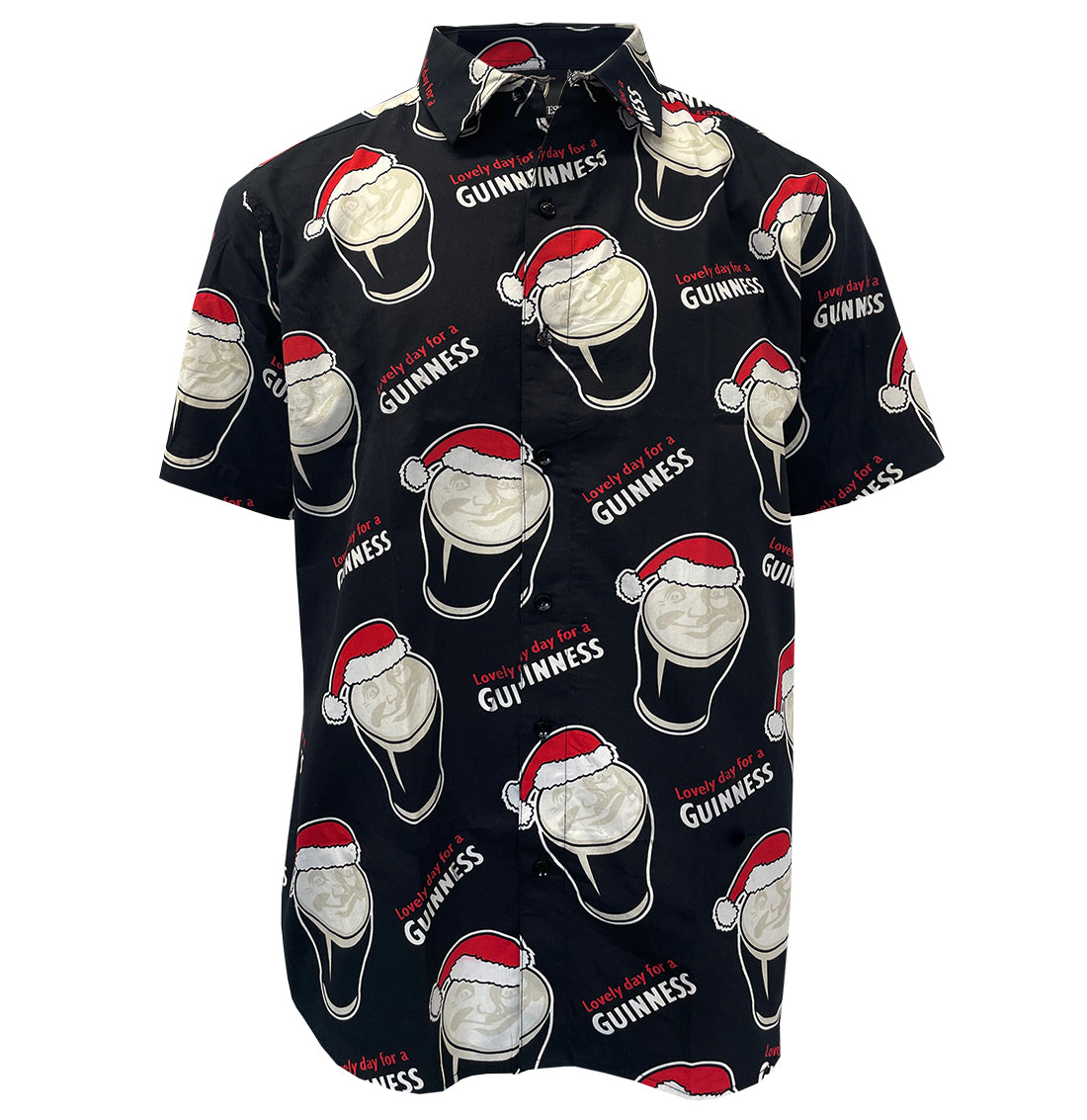 Bring the Christmas cheer and a cheeky pint with the Guinness All Over Print Smiley Pint Christmas Shirt! Featuring a playful all-over print of smiling Guinness pints topped with Santa hats, this shirt is a festive favorite for fans of the black stuff.