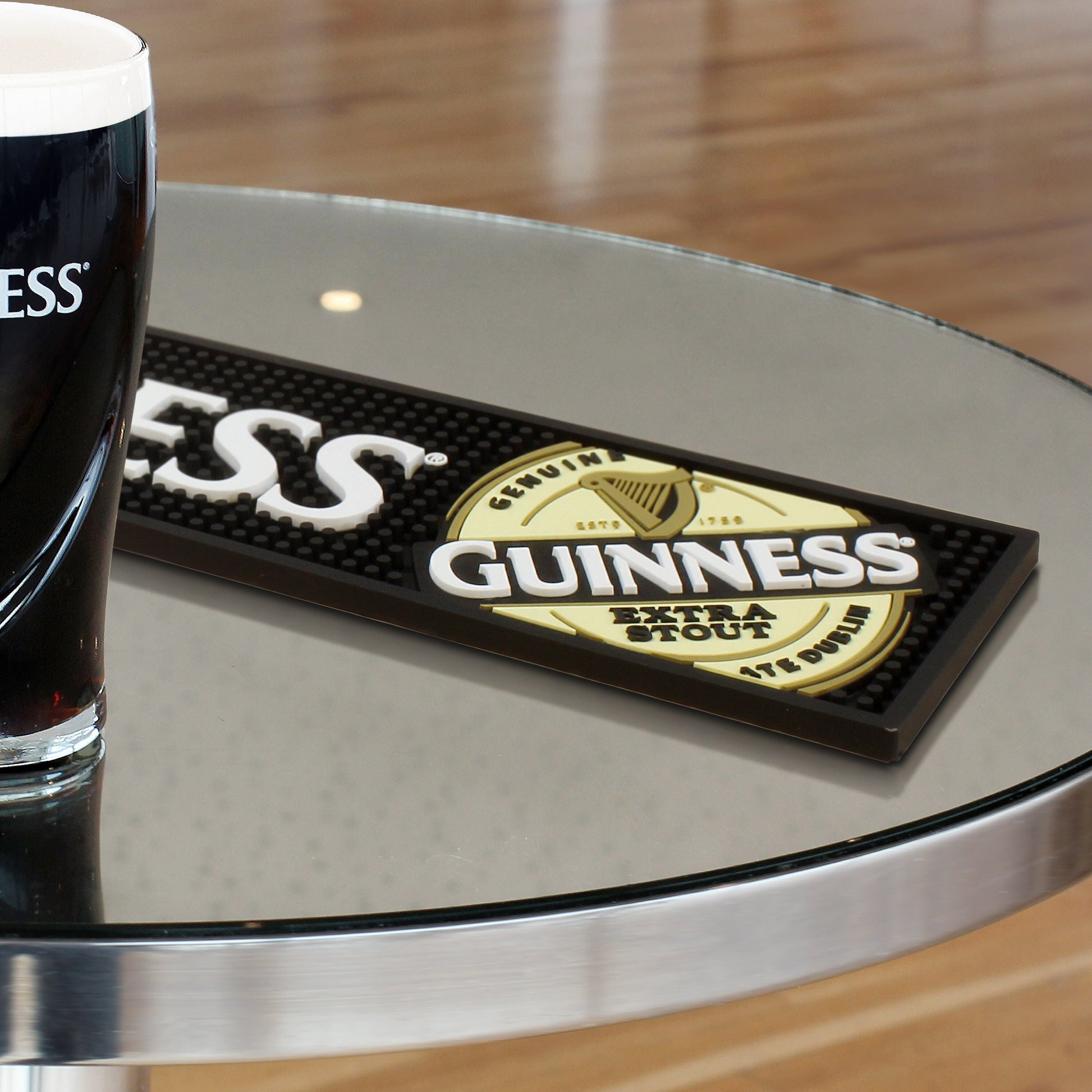This is perfect to give a touch of an Irish pub to your home or business. It fits securely to most surfaces and spillages collect in its deep PVC groves. It is designed with the official Guinness label making it a must-have accessory. Get the Irish pub look today!