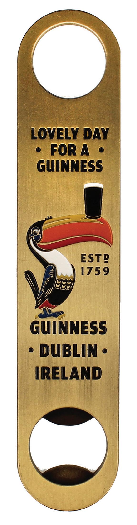 Enjoy effortless bottle opening with the Guinness Barman Bottle Opener, crafted from durable steel. Featuring the iconic 'Lovely Day for a Guinness' Toucan, it's a stylish and lasting addition to your bar tools.