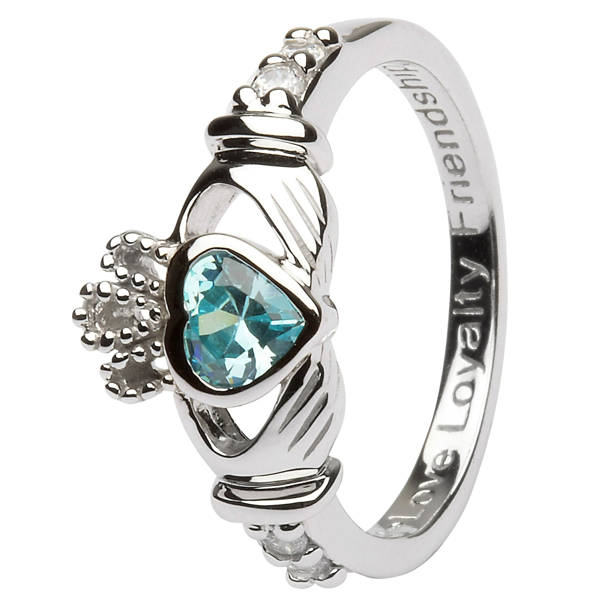 Platinum Plated Claddagh Birthstone Ring MarchCouldn't load pickup availability
