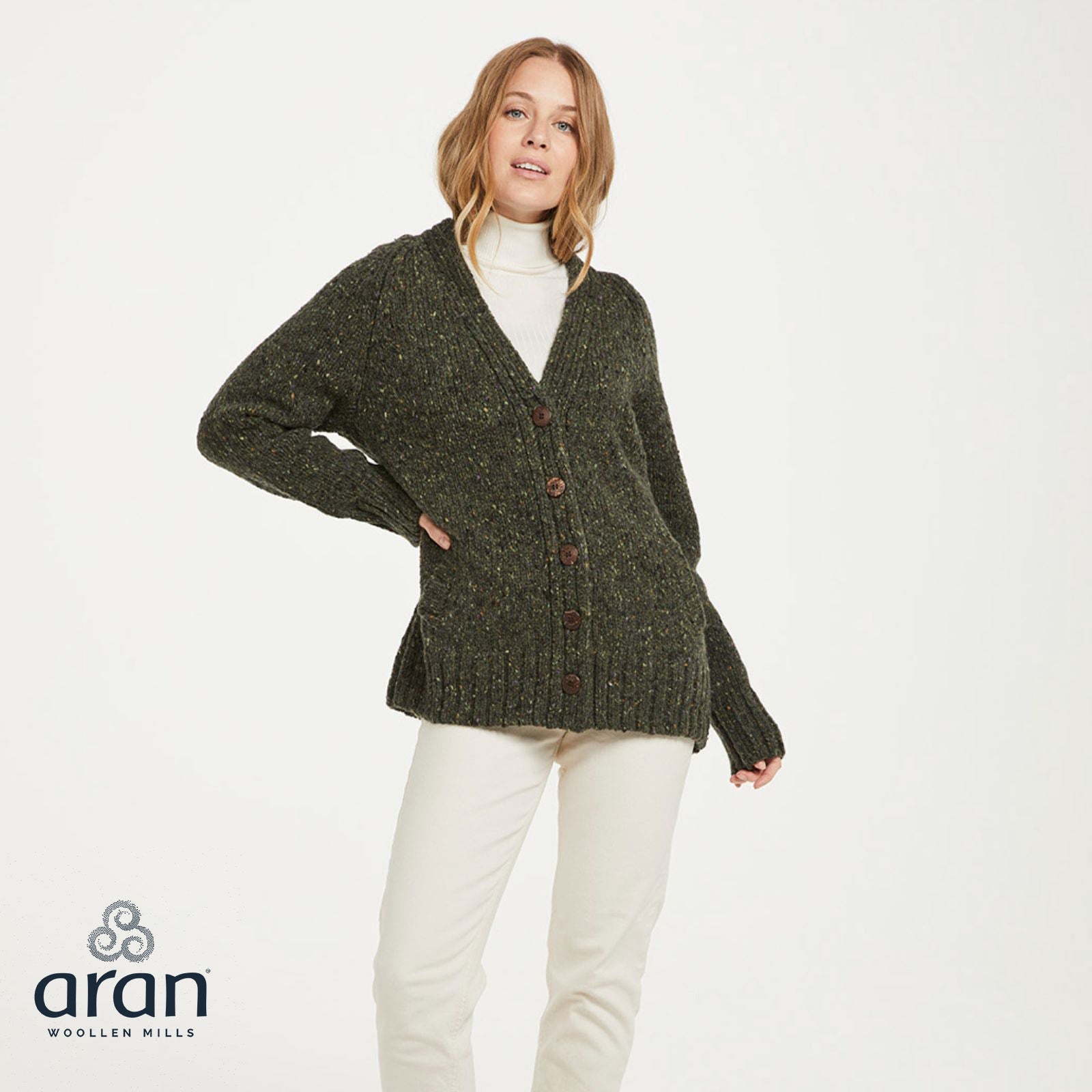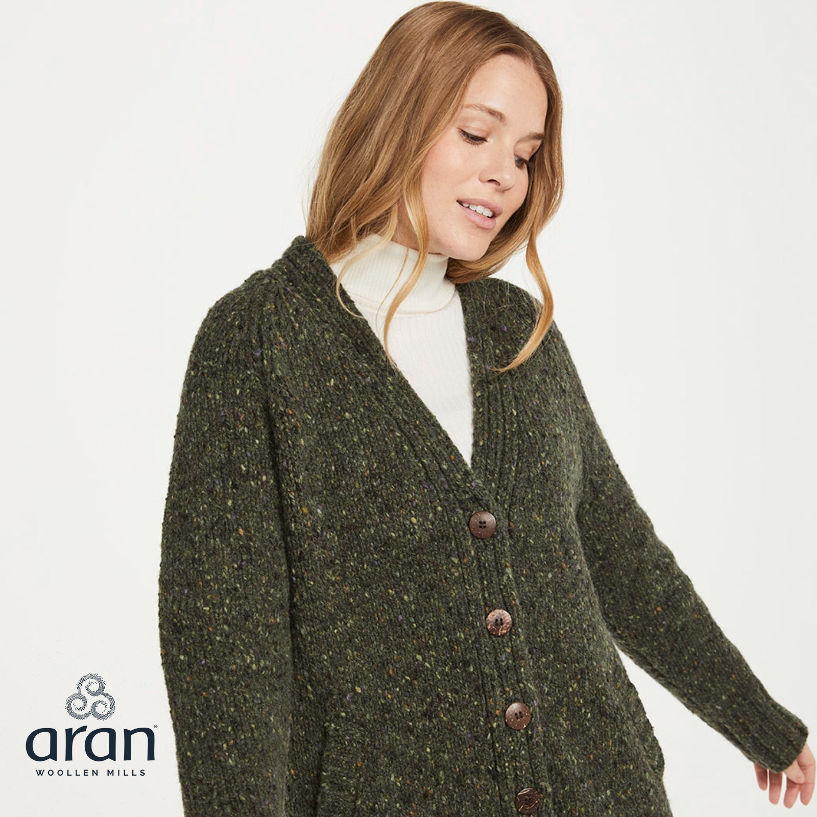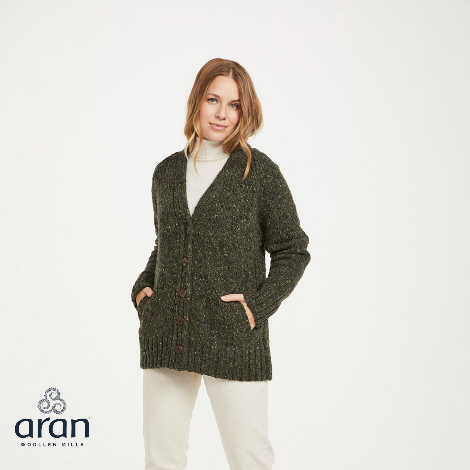 Ladies Donegal Cardigan with Side Pocket GreenDesigned & Made in Ireland - 100% Natural & Sustainable