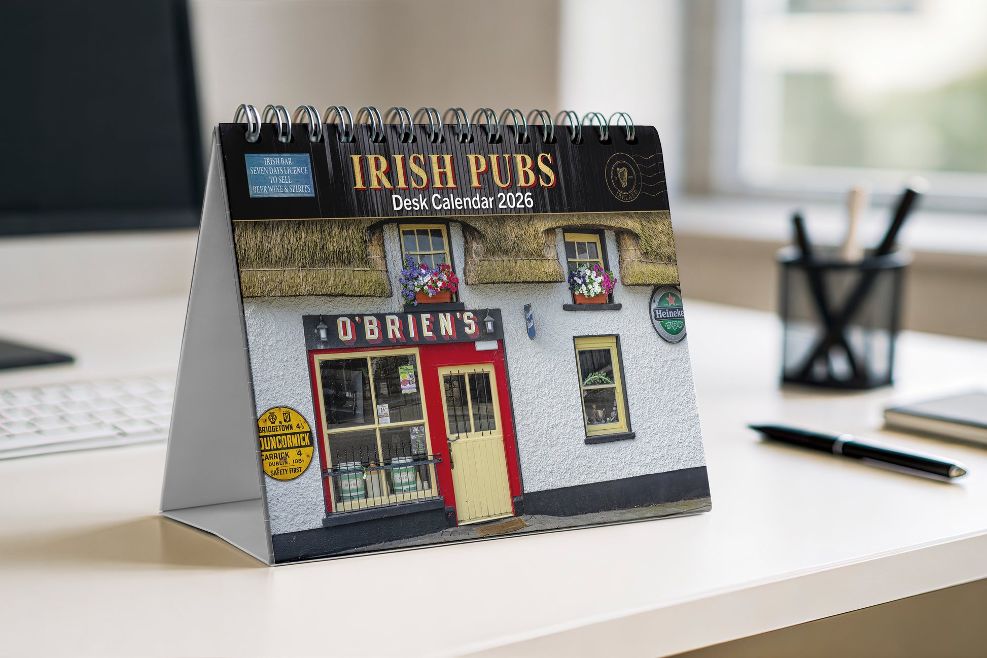 Celebrate Ireland’s pub culture and timeless charm with this beautifully produced desk calendar featuring photography by Liam Blake. Capturing the warmth, character, and unique spirit of Irish pubs, each image reflects an authentic part of Irish life and storytelling. Perfect for bringing a touch of Ireland to your home or workspace — or as a thoughtful gift for someone who loves Irish culture.