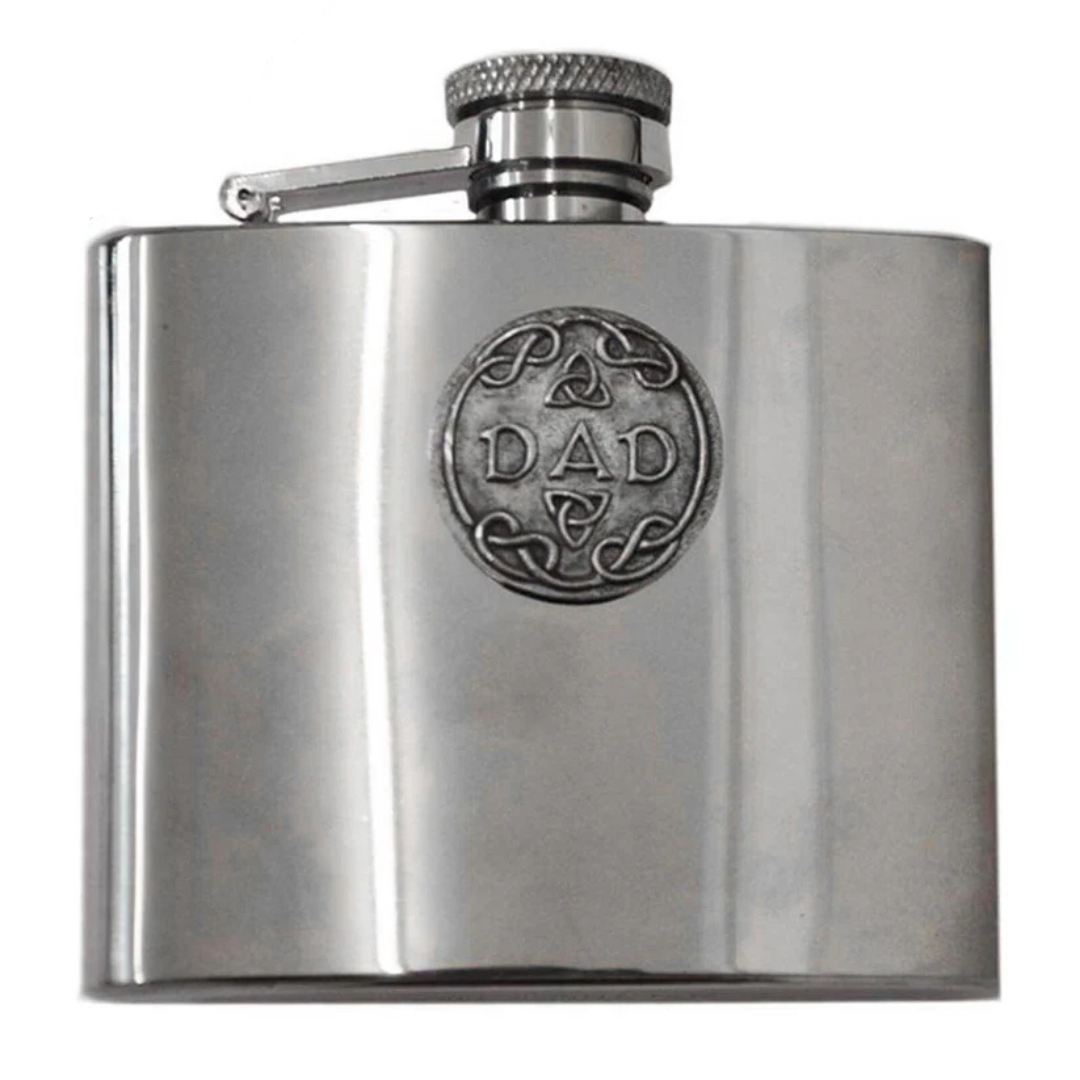 Mullingar Pewter 4oz Hip Flask With Trinity Design & Dad Text