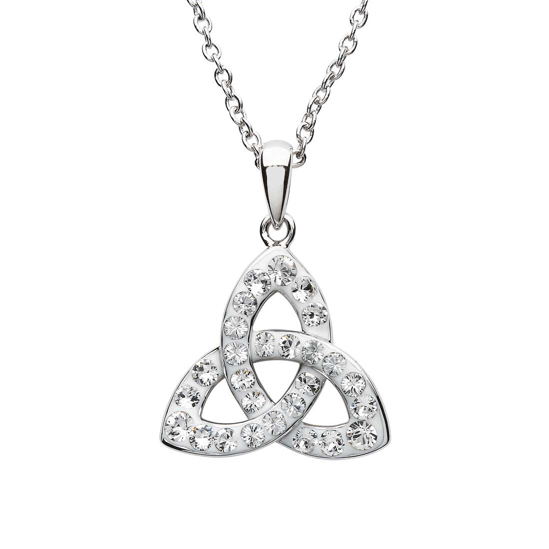 Platinum Plated Trinity Knot Necklace With Clear Crystals