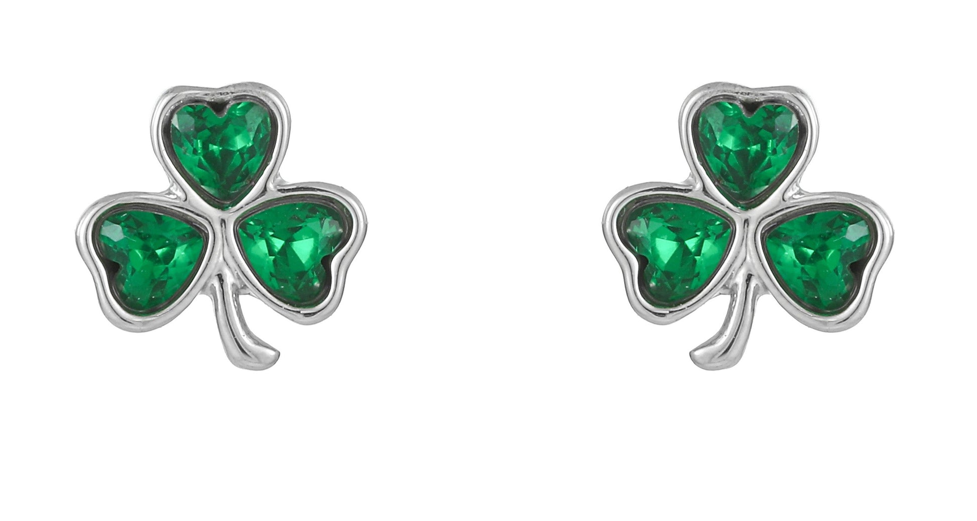 Silver Plated Shamrock Design 3 Green Stone Earrings