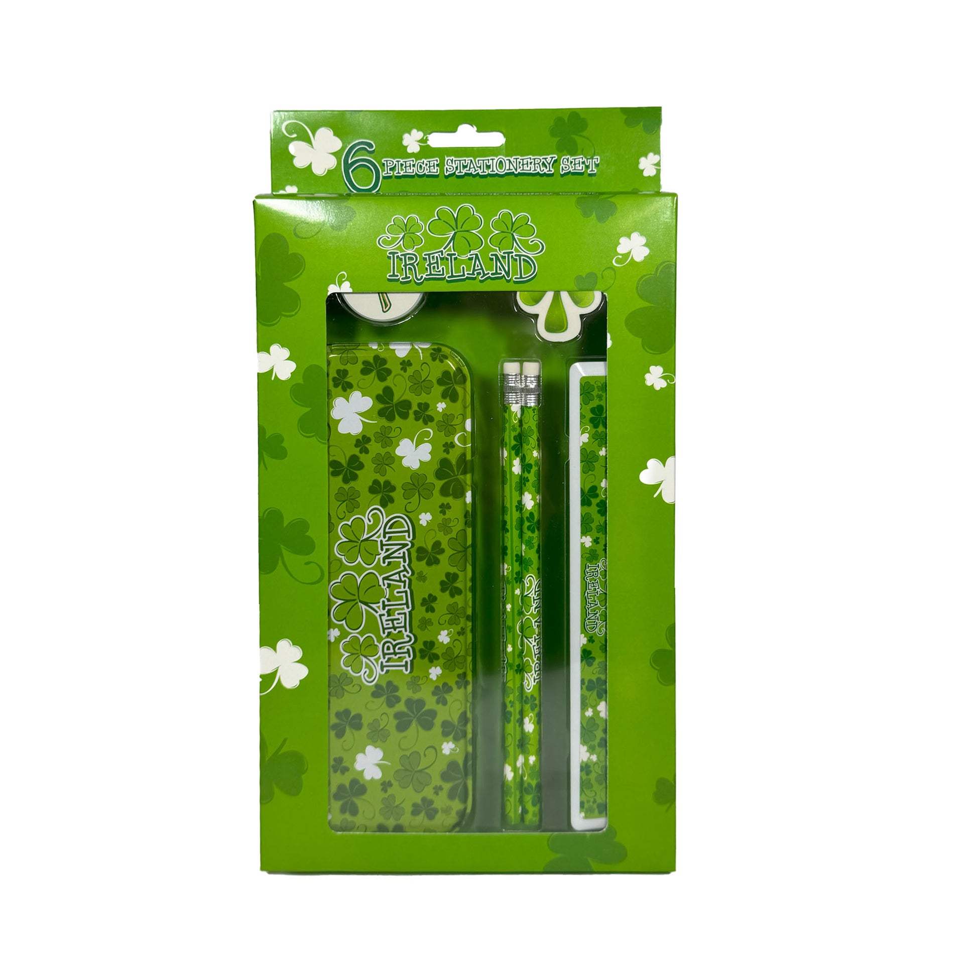 Bring a touch of Irish charm to your desk with this delightful Shamrock Ireland Stationery Set. Decorated with vibrant shamrock designs, the set includes all your school or office essentials in one coordinated collection, perfect for gifting or everyday use.