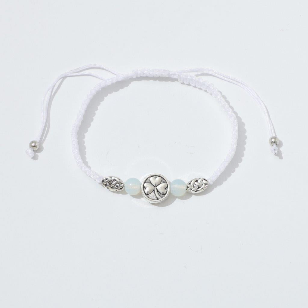 Embrace Irish elegance with this beautiful Shamrock Quartz Bracelet in beautiful white hues. It is perfect for everyday charm or gifting.