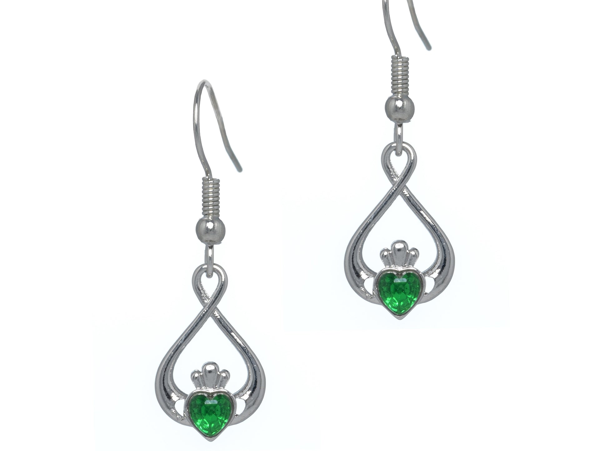Silver Plated Claddagh Design Green Stone EarringsCouldn't load pickup availability