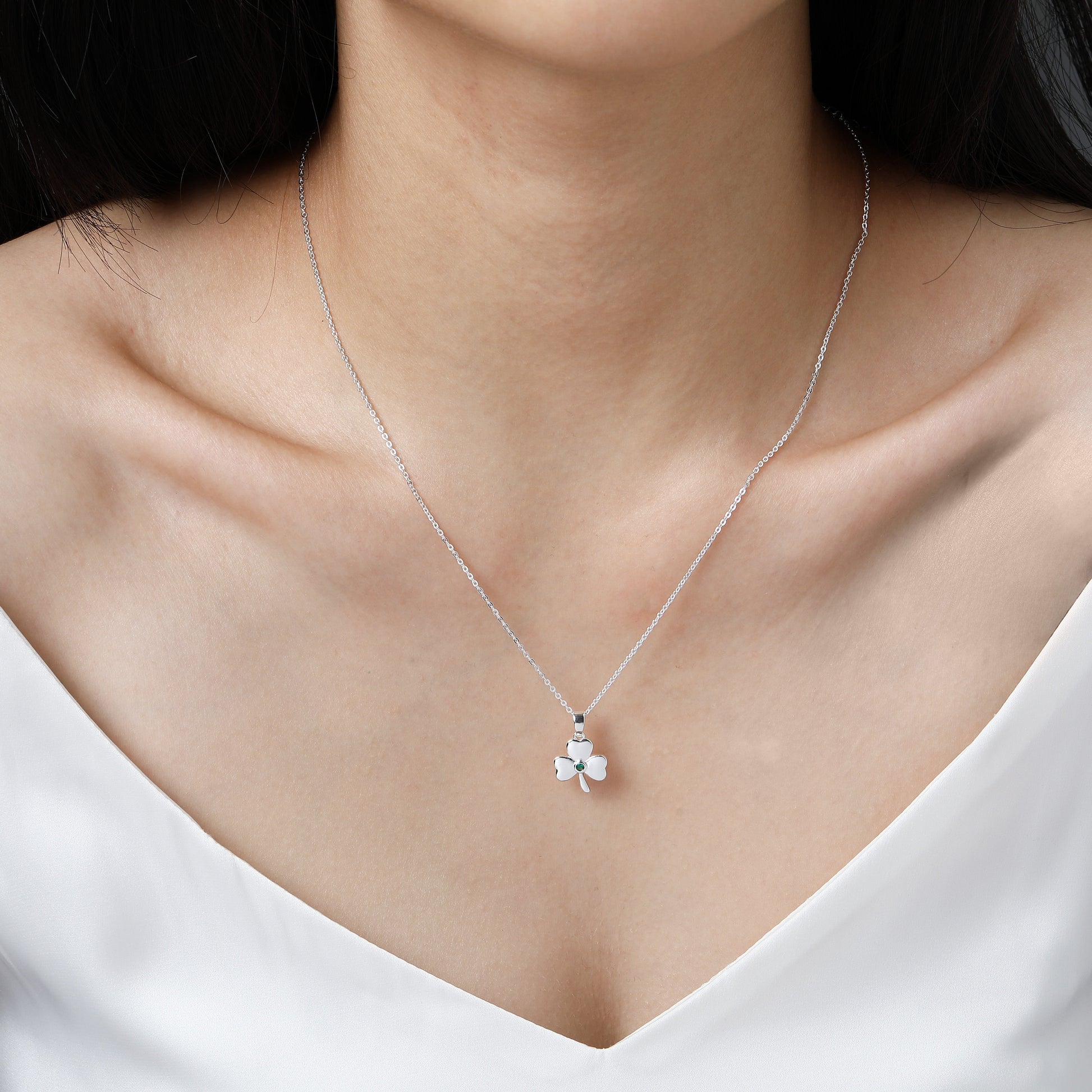 Celebrate Irish heritage with this charming Silver Plated Shamrock Pendant from Celtic Ore. Featuring the iconic shamrock, a symbol of luck and connection to Irish tradition, the pendant is accented with a vibrant green stone that reflects the beauty of the Emerald Isle.