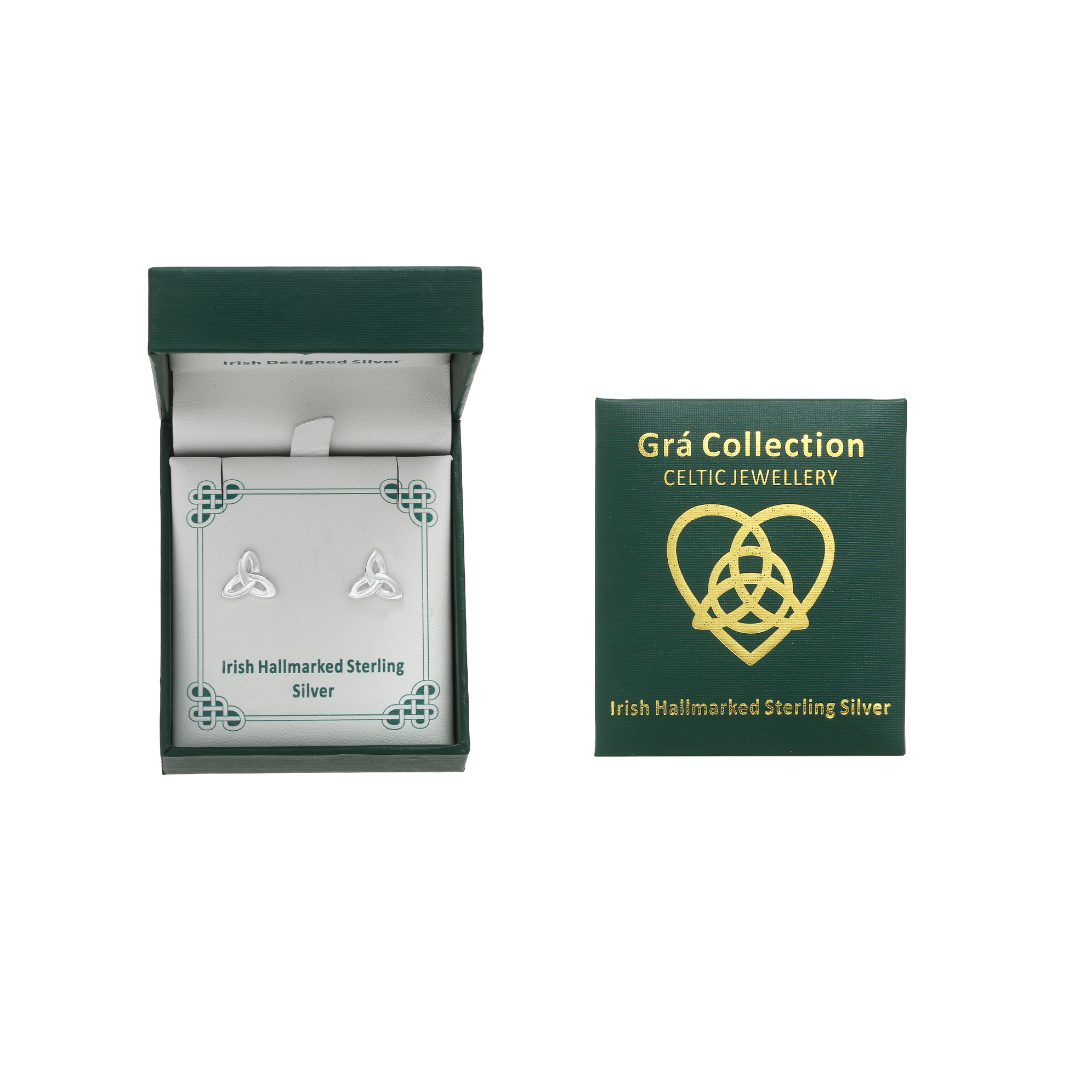 These sterling silver Plain Trinity Knot earrings feature a sleek, timeless design symbolizing eternal love, unity, and the Holy Trinity. A subtle yet meaningful touch of Celtic heritage, perfect for everyday elegance or gifting